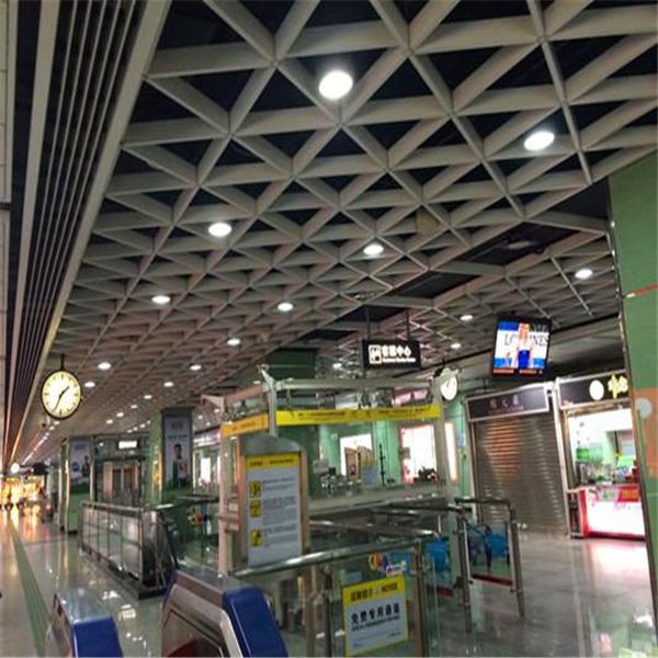 金騰達建材鋁格柵天花吊頂行業(yè)應用:超市,展廳,寫字樓,商場,食堂,酒吧,車站,地鐵,機場,歌舞廳等簡易裝飾的大空間。