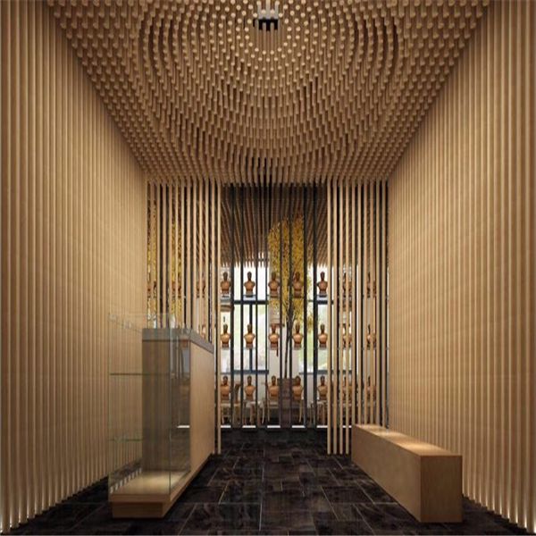 鋁圓管天花是一種裝飾性垂簾型吊頂天花。鋁圓管在于具有開(kāi)闊的視野,線條飄逸,通透,層次感好,視覺(jué)效果能產(chǎn)生夢(mèng)幻線條美的感覺(jué);鋁圓管吊頂在于在材質(zhì)